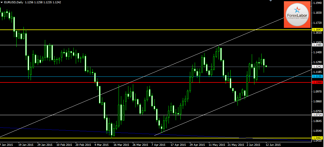 В последний день минувшей недели на валютном рынке Forex пара EUR/USD находилась во флэте 1.1151 -1.1296. Участники рынка проигнорировали позитивную макроэкономическую статистику из США, однако “греческий фактор” не позволил быкам одержать победу. Пара GBP/USD по итогам дня потяжелела на 0.26% на фоне снижения котировок кросс-курса EUR/GBP, которое оказало поддержку британской валюте. Пара USD/JPY в течение дня находилась во флэте 123.13 -123.81 на фоне распродаж на японском и американском рынке акций.